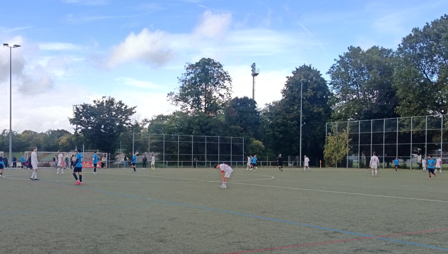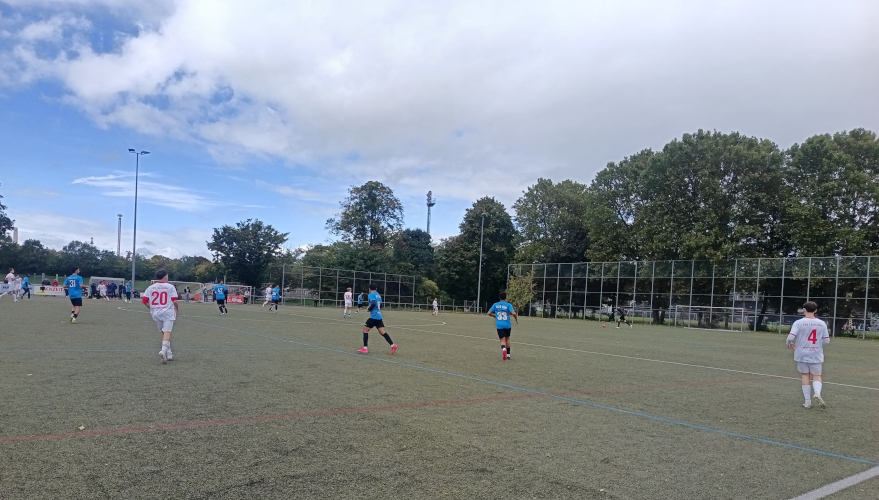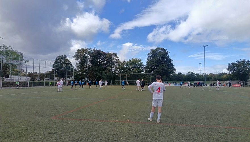 Von der ersten Minute an spielten wir taktisch klug und ließen kaum nennenswerte Chancen für den Gegner zu. Es war ein intensives Duell auf Augenhöhe, geprägt von hohem Tempo und starkem Einsatz auf beiden Seiten. In der 37. Minute nutzte der SKV Palästina Al Q’uds eine Unachtsamkeit in unserer Defensive eiskalt aus. Mohamed Abuzakariae brachte die Heimmannschaft mit 0:1 in Führung – eine ihrer sehr wenigen wirklich gefährlichen Torchancen im gesamten Spiel. Noch vor der Halbzeit mussten wir verletzungsbedingt gleich zwei Mal wechseln – ein herber Rückschlag. Doch unser Trainer Roberto Zaccaro bewies erneut ein gutes Händchen und stellte das Team neu und stabil auf.